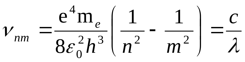 Сопоставление (2) с формулой Бальмера-Ритца (1) дает возможность выразить постоянную Ридберга через универсальные константы – заряд и массу электрона (е и mе), скорость света с и постоянную Планка h: