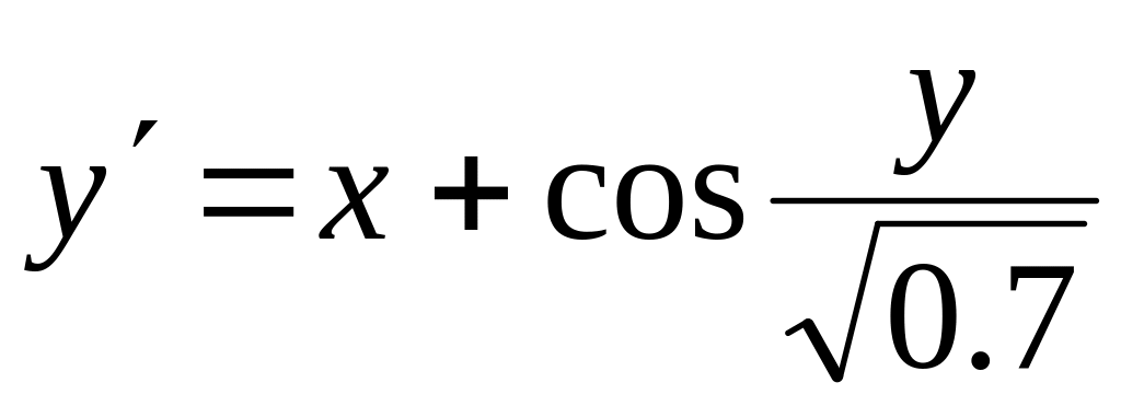 Одним из численных методов решения дифференциальных уравнений является метод Эйлера. Пусть требуется найти решение задачи Коши на отрезке [a,b]. Разобьем отрезок [a,b] на n равных частей и получим последовательность xk=x0+hk, k=0,1,…,n; h=(b-a)/ n. Формула Эйлера для вычисления значений y имеет вид: