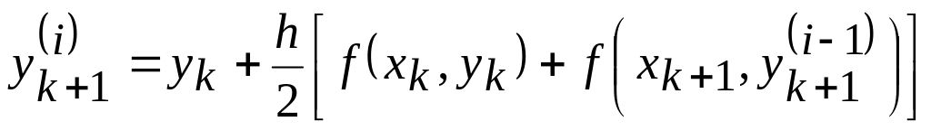 2) Используя y0k+1 в качестве начального приближения, находим уточнение значение y(i)k+1 по формуле (3):