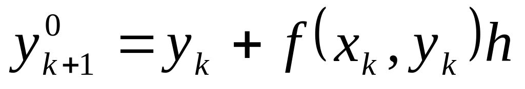 Основным недостатком метода Эйлера является невысокая точность, поэтому чаще используют одну из модификаций метода Эйлера – метод Эйлера с уточнением. Согласно этому методу грубое приближение y(0), найденное по формуле (2), уточняется в ходе построения итерационной последовательности
