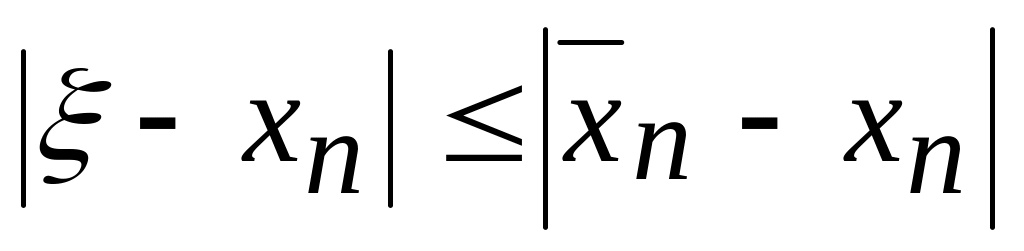 Метод хорд и касательных обеспечивает на n-м шаге абсолютную погрешность приближения к корню уравнения (1) , не превосходящую длины n-го отрезка: