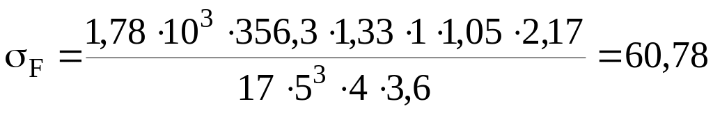 YF3=2,1, KF=1,33 [1, рис. 9.5, кривая 5], KF=1, KFm=1,05 при m=5 мм