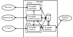 Таблиця 1.2 показує взаємодію системи з сутністю «студент» відповідно до функцій системи.