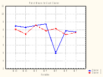 Далі ми поділили досліджувану групу на два кластери за шкалами методики ШОХП, а саме: націленість на худання, булімія, незадоволеність своїм тілом, неефективність, перфекціонізм, недовіра в міжособистісних відносинах та інтероцептивної некомпетенції (Рис. 14) Перший кластер – Не перфекціоністи мають середні показники по всіх шкалах та низькі показники в шкалі перфекціонізму. Другий кластер – Перфекціоністи мають середні показники за всіма шкалами.