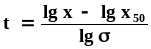 Логарифмически нормальное распределение удобно изображать графически в такой системе координат, по оси абсцисс которой откладываются логарифмы диаметров частиц, а по оси ординат - величины t, т.е. в логарифмически вероятностной логарифмической сетке. График логарифмически нормального распределения, вычерченный в такой сетке изобразится прямой линией.