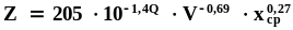 Функцию безразмерного комплекса подсчитываем по уравнению