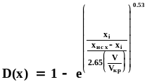 Распределительную функцию разрушившейся части материала определяем по модифицированному уравнению Розина-Раммлера