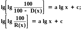 Для практического применения формулы Розина-Раммлера уравнение (11) дважды логарифмируется: