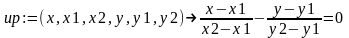 >up:=(x,x1,x2,y,y1,y2)->(x-x1)/(x2-x1)-(y-y1)/(y2-y1)=0;