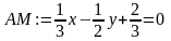 d) Найдем точку пересечения высоты CH и медианы АМ, как решение системы уравнений прямых CH и АМ: