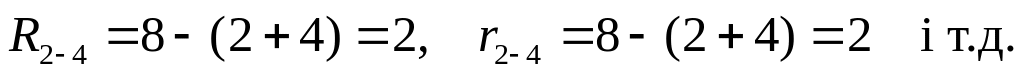 5. За формулами (21), (22) розраховуємо резерви часу робіт: