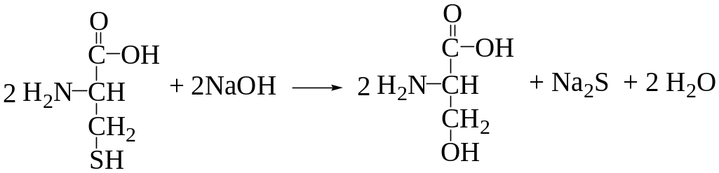 Ход исследования: К 5 каплям исследуемого раствора (раствор белка) добавляют 5 капель 30% раствора гидроксида натрия NаОН и 1 каплю 5% раствора ацетата свинца Рb(СН3СОО)2. При нагревании жидкость в пробирке постепенно темнеет и выпадает черный осадок сульфида свинца PbS.