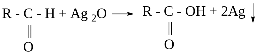 В чистую пробирку вносят 5-6 капель аммиачного раствора серебра и прибавляют 1-2 капли 10% раствора формальдегида или уксусного альдегида. Пробирку слегка подогревают. Выделяется металлическое серебро в виде блестящего зеркального налета на стенках пробирки или образуется черный осадок металлического серебра.