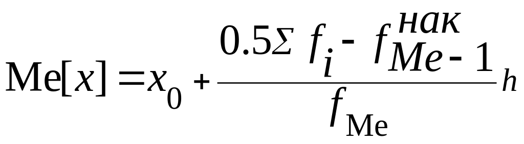 Численное значение медианы можно определить по ряду накопленных частот. Накопленная частота для Me[x] равна половине объёма совокупности