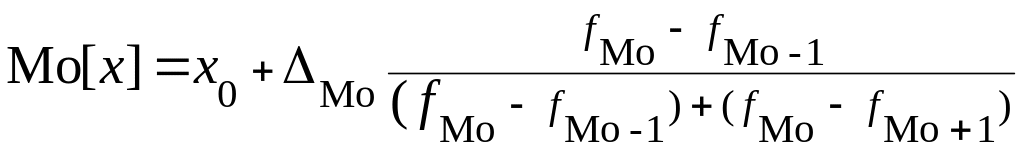 3. Мода (Mo[x]) – наиболее часто встречающееся значение признака в совокупности.