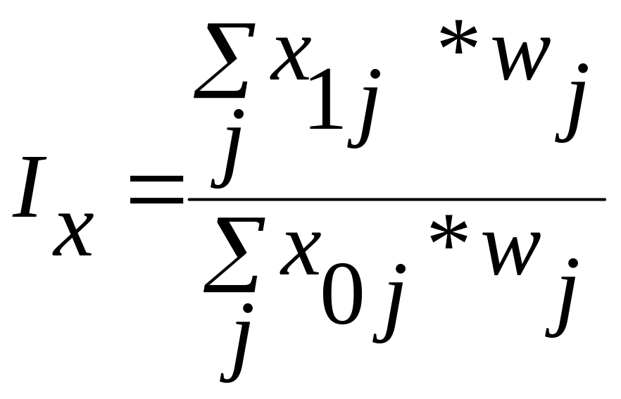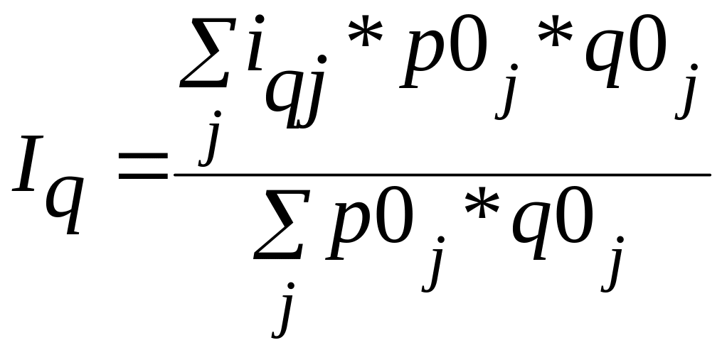 Если даны индивидуальные индексы физического объема (iq1, iq2,..., iqn), то агрегатный индекс физического объема для этого набора продукции будет определен как среднее арифметическое с весами усреднения p0j *q0j: