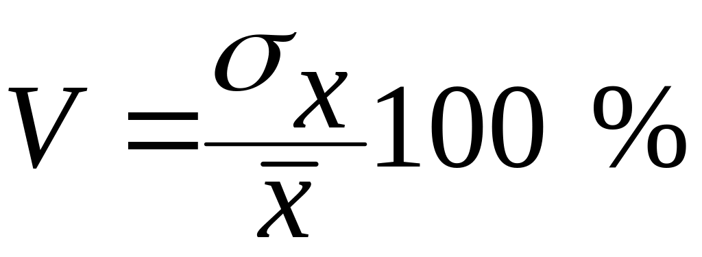 3. Коэффициент вариации (V) характеризует относительную величину варьируемости признака в данной совокупности (по отношению к среднему значению):