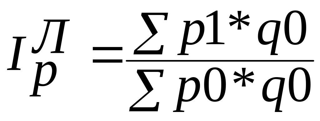 Такой агрегатный индекс цен называется индексом Ласпейреса в формуле обозначении буквой Л).