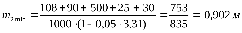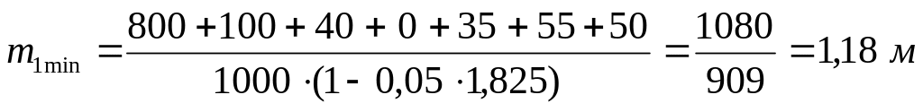 5. Для сравниваемых механизированных комплексов и входящего в их состав оборудования определяем минимально необходимую мощность пласта m1min, м, при которой обеспечивается нормальное функционирование выемочной машины в зоне ее прохода под крепью по формуле