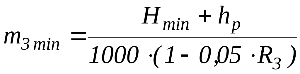 15. Для сравниваемых механизированных комплексов и входящего в их состав оборудования определяем минимально необходимую мощность пласта m3min, м, при которой обеспечивается работа механизированной крепи без исчерпания ее податливости в условиях максимального опускания пород кровли по формуле