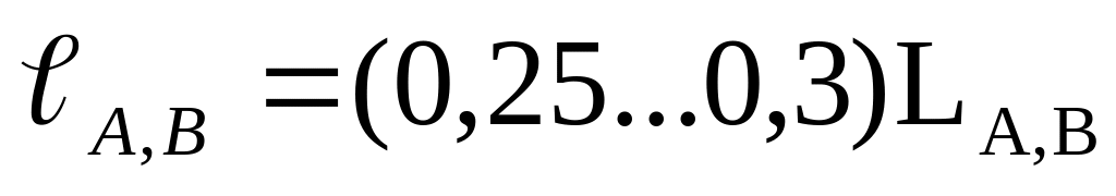 6. Відстані від стін до крайніх світильників у ряду (lА, м) і крайніх рядів світильників (lB, м) (рис. 1.1, б) для приміщень, у яких робочі місця розміщуються вздовж або біля стін, визначаються за виразом