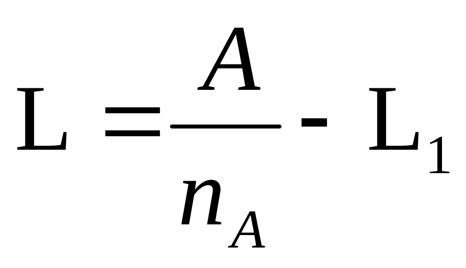 де А - довжина приміщення, м; nА - кількість опромінювачів в ряду, пА =2 шт.; L1 – відстань, на яку не повинен доходити опромінювач до центру і країв опромінювальної площини, так як тварина, яка знаходиться там, одержить подвійну дозу опромінення, L1=0,58Нр (рис. 6.1).