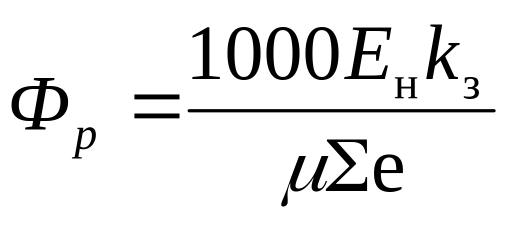 18. Розраховують світловий потік кожної лампи освітлювальної установки Фр, лм по формулі