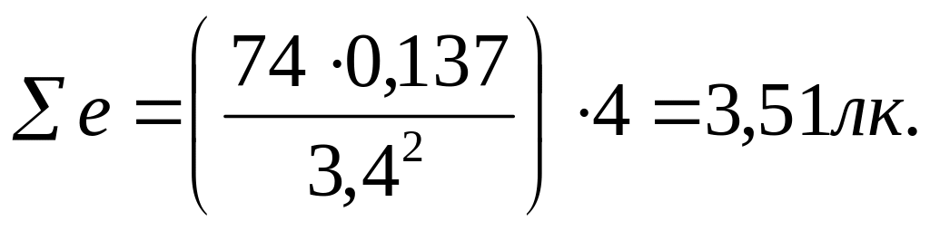 16. В контрольній точці А підраховуємо сумарне освітлення Σe, лк, від чотирьох найближчих світильників за формулою