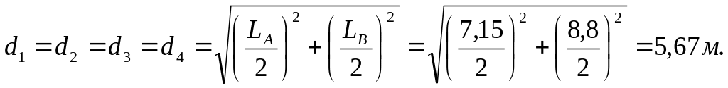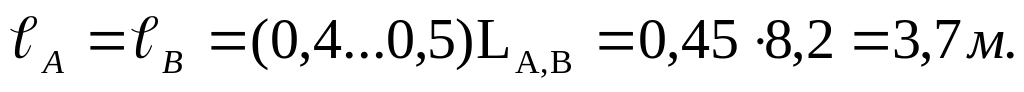 6. Визначаємо відстані від стін до крайніх світильників lА,В, м для приміщень, у яких робочі місця не знаходяться біля стін