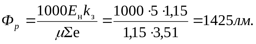 18. Розраховуємо світловий потік кожної лампи освітлювальної установки Фр, лм