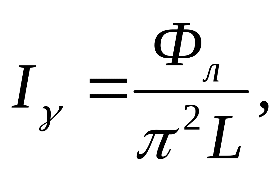 14. Визначають силу світла з одиниці довжини лінії (лампи), що світиться, в площині, перпендикулярній осі лінії за формулою