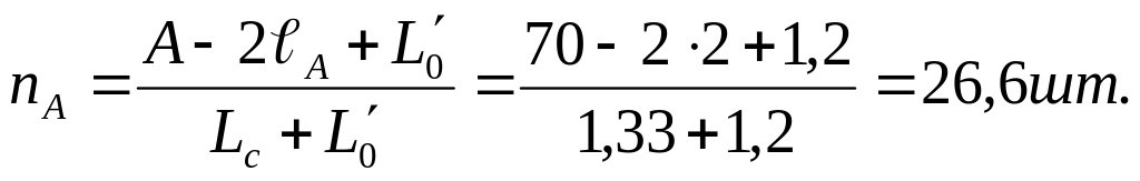 10. Визначаємо кількість світильників у ряду nA, шт.