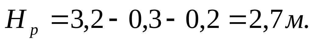 3. Обчислюємо розрахункову висоту підвішування світильників Нр, м за формулою
