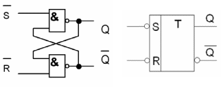Асинхронный .RS-триггер с инверсными входами. Триггеры такого типа строятся на логических элементах И-НЕ. В этом случае уровень 0 является активным входным сигналом, а уровень 1 — пассивным. Информационные входы и соответствующие сигналы таких триггеров