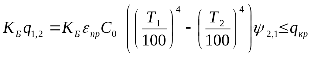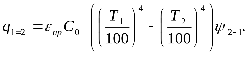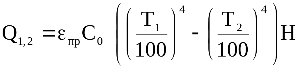 де Q1,2–кількість теплоти, що передається від поверхні 1 до поверхні 2, Вт;