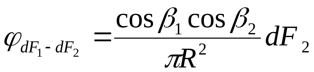 Теплова енергія випромінюється поверхнею по віх напрямках. Згідно закону Ламберта розподілення цієї енергії по напрямкам пропорційно косинусу кута між напрямком випромінювання і перпендикуляром до поверхні що випромінює. Важливо те ,що при променевому теплообміні двох поверхонь не вся енергія і не вся теплота, що випромінюється поверхнею 1, потрапляє на поверхню 2.