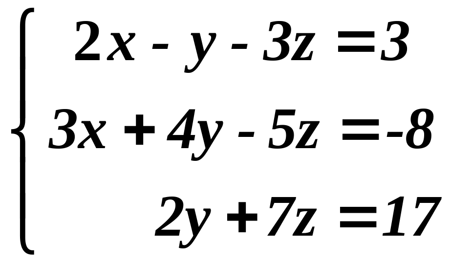 Одержана матриця має трикутний вид; за цією матрицею запишемо систему рівнянь, еквівалентну початковій системі,