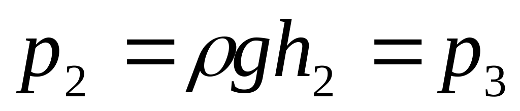 С левой стороны давление р3 создаётся давлением левого верхнего поршня р и столбы жидкости высотой h1: