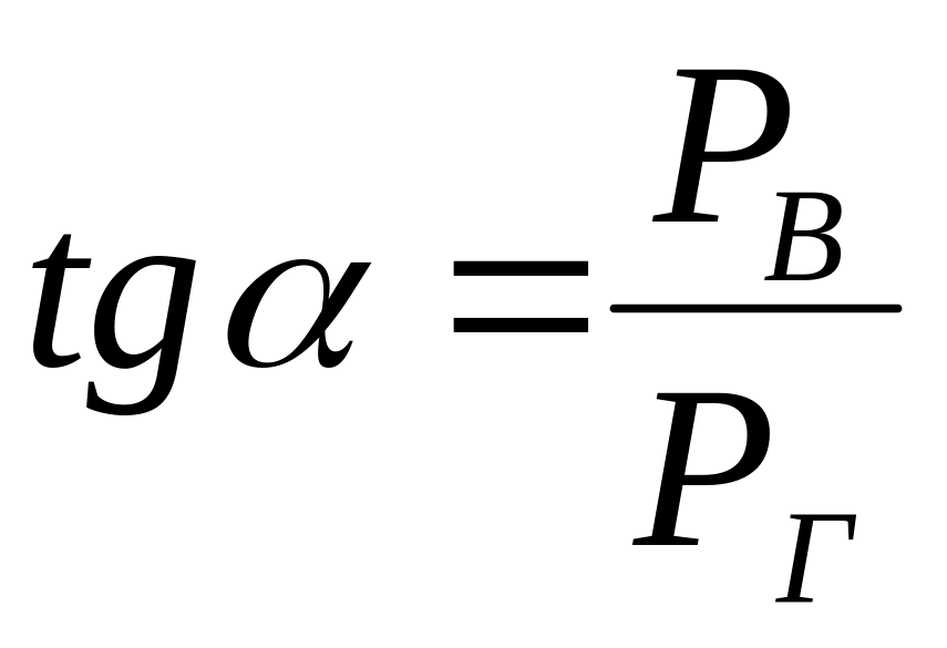 Угол наклона силы Р к горизонту определяется по тангенсу угла :