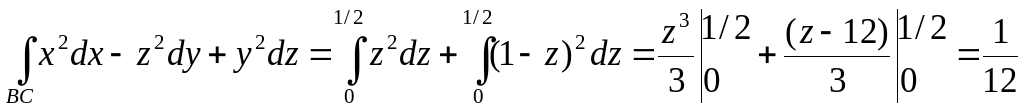 Обчислимо кожний із криволінійних інтегралів . На лінні AB(z=0, dz=0) x змінюється від 1 до 0 . Тому