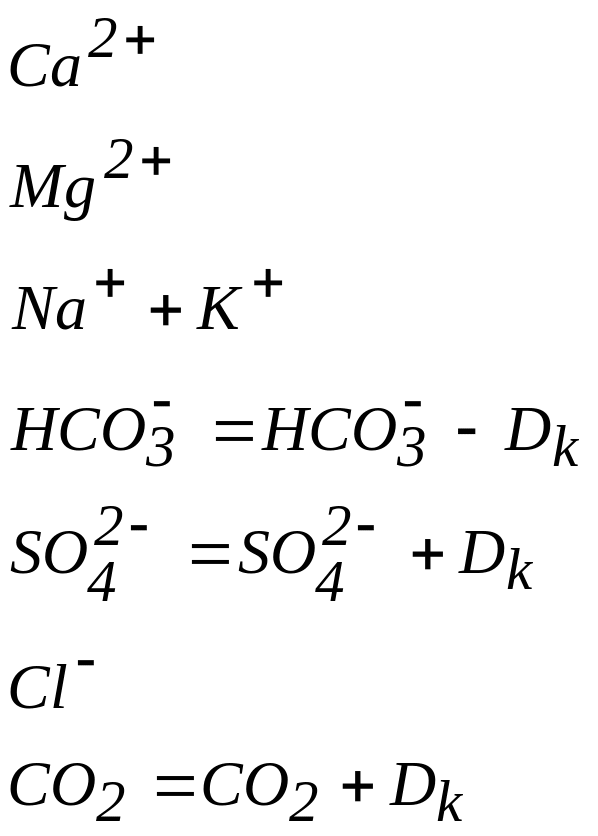 Содержание СО2 (значения констант и коэффициентов активности см. прил.1 и 2) |