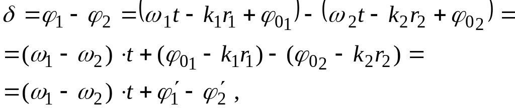 де = 1 – 2 – різниця фаз двох хвиль у даній точці простору.