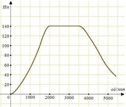 На графике изображена зависимость крутящего момента автомобильного двигателя от числа его оборотов в мин. Какое наименьшее число оборотов в мин. должен поддерживать водитель, чтобы крутящий момент был не меньше 100Н.м?