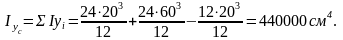 Определим геометрические характеристики сечения. Для вычисления главных центральных моментов инерции воспользуемся зависимостью между моментами инерции при параллельном переносе осей.