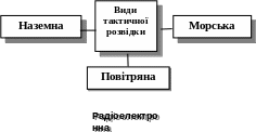 Види тактичної розвідки (мал.3), її сили і засоби постійно розвиваються і удосконалюються. У минулому вся тактична розвідка складалася лише з одного виду розвідки – військової, котра велася візуальним спостереженням, діями роз'їздів і пошукових груп.