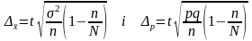 Відносні стандартні похибки вибірки розраховуються за формулами: