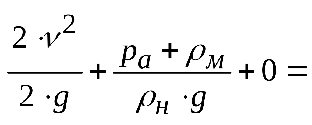 Проведемо два перетини по трубопроводу: 1-у місці підключення манометра, II — у місці виходу нафти з трубопроводу і площина порівняння — по I перетині (слід її на кресленні — лінія ОО). Запишемо для цих двох перетинів рівняння Бернуллі і підставимо в нього значення параметрів, приведених у таблиці: