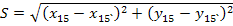 Тогда на местности находится точка 15`. Необходимо 15`передвинуть в положение 15. Для этого вычисляется дирекционный угол α и расстояние S.