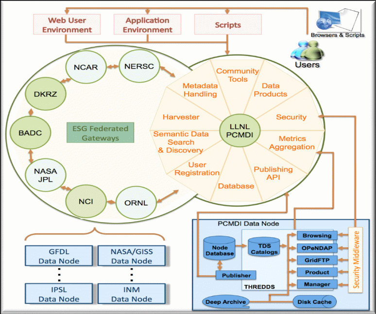 Рисунок 1 – Структура научного грида ESG-CET для исследований климата [6]