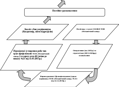 На рисунку 4.2 стисло зображено впроваджені елементи системи менеджменту охорони здоров'я та забезпечення безпеки праці ТОВ «Механічний завод» згідно стандарту ОНSAS 18001:2007.